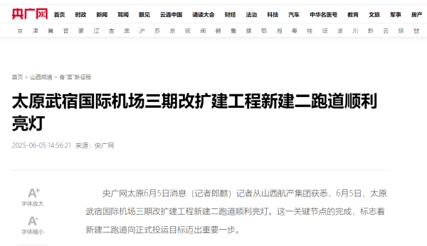 下一步,山西航空产业集团有限公司将统筹各参建单位,加强与民航行业主管部门对接,全力推进校飞、试飞及验收工作,确保新建二跑道顺利投运,助力太原打造现代化区域航空枢纽,推动山西民航事业高质量发展再上新台阶。